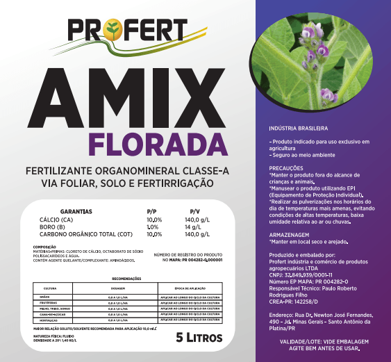 Fertilizante e bioestimulante que auxilia no pegamento da florada e fortalecimento das flores, gerando mais frutos e maior produtividade.