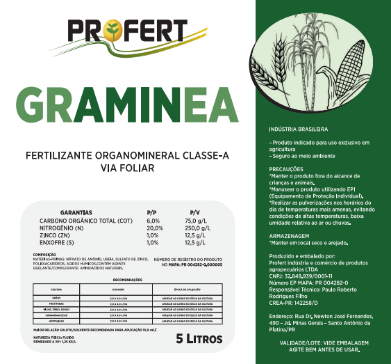Fertilizante e bioestimulante com aminoácidos, nitrogênio, zinco e enxofre, promovendo maior desenvolvimento e produtividade.